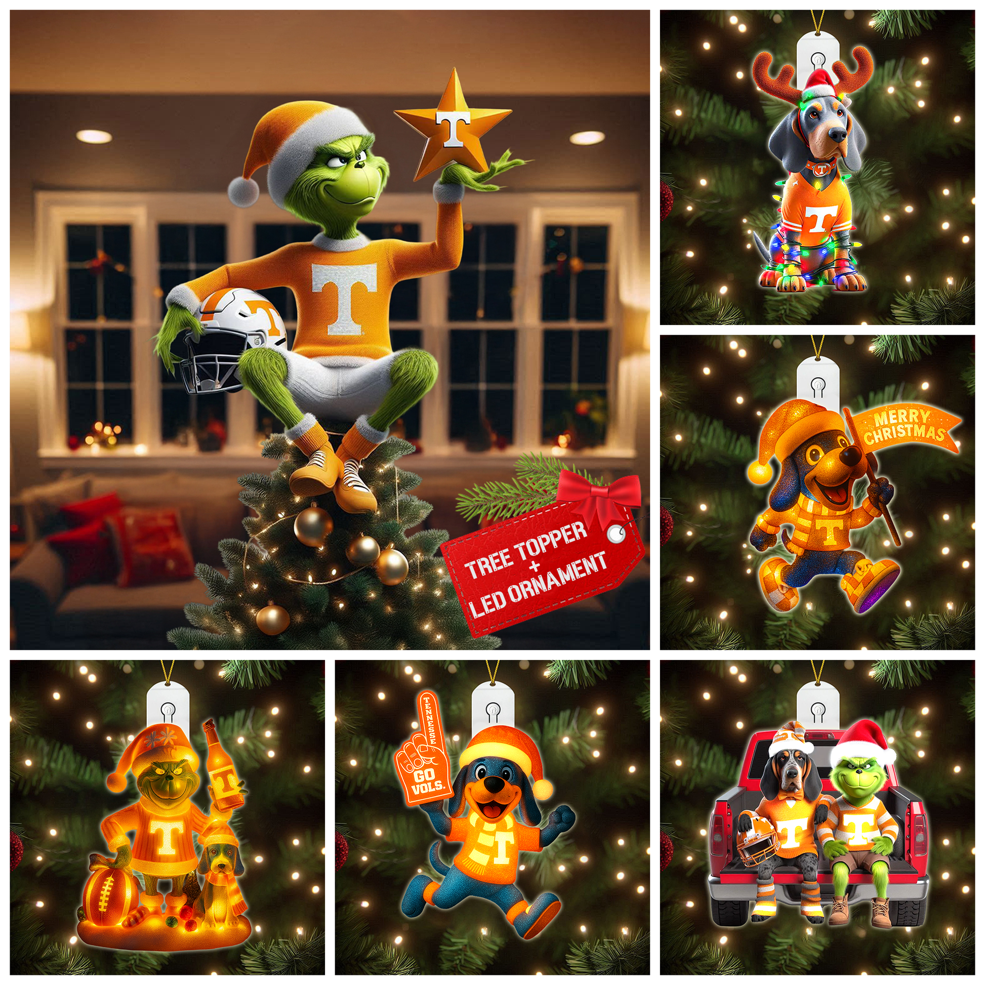 6 Unique led Ornaments – A full set of detailed, themed ornaments including Santa figures, festive icons, and fun holiday characters — each crafted to capture the joy of the season.